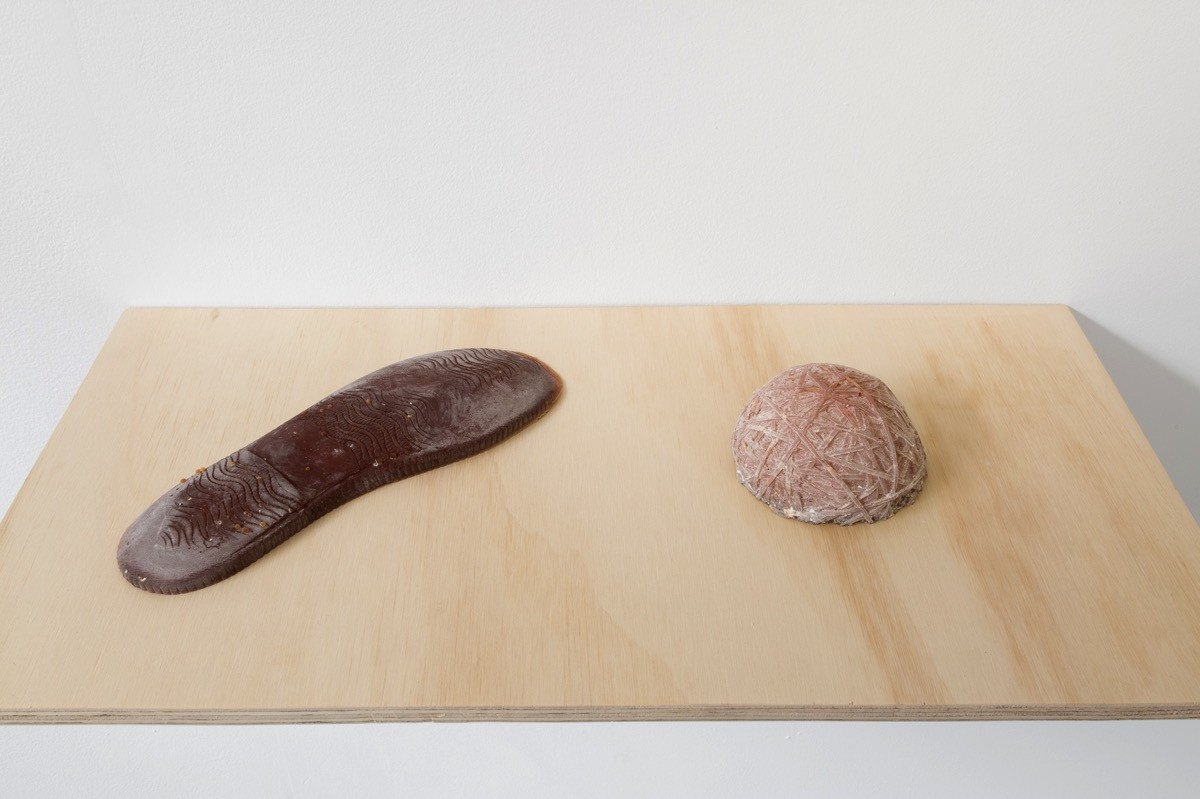 Rubber is collected from the garden and used to recreate products and consumables: bike tyre, hot water bottle, sneaker sole, ‘eraser’. The intimacy of these objects underscores a personal responsibility for consumption and the political and environmental problems of globalised industries. In the gallery context the work asks how artistic practices are implicated in environmental exploitation and how they could be reconfigured in a sustainable and renewable way.