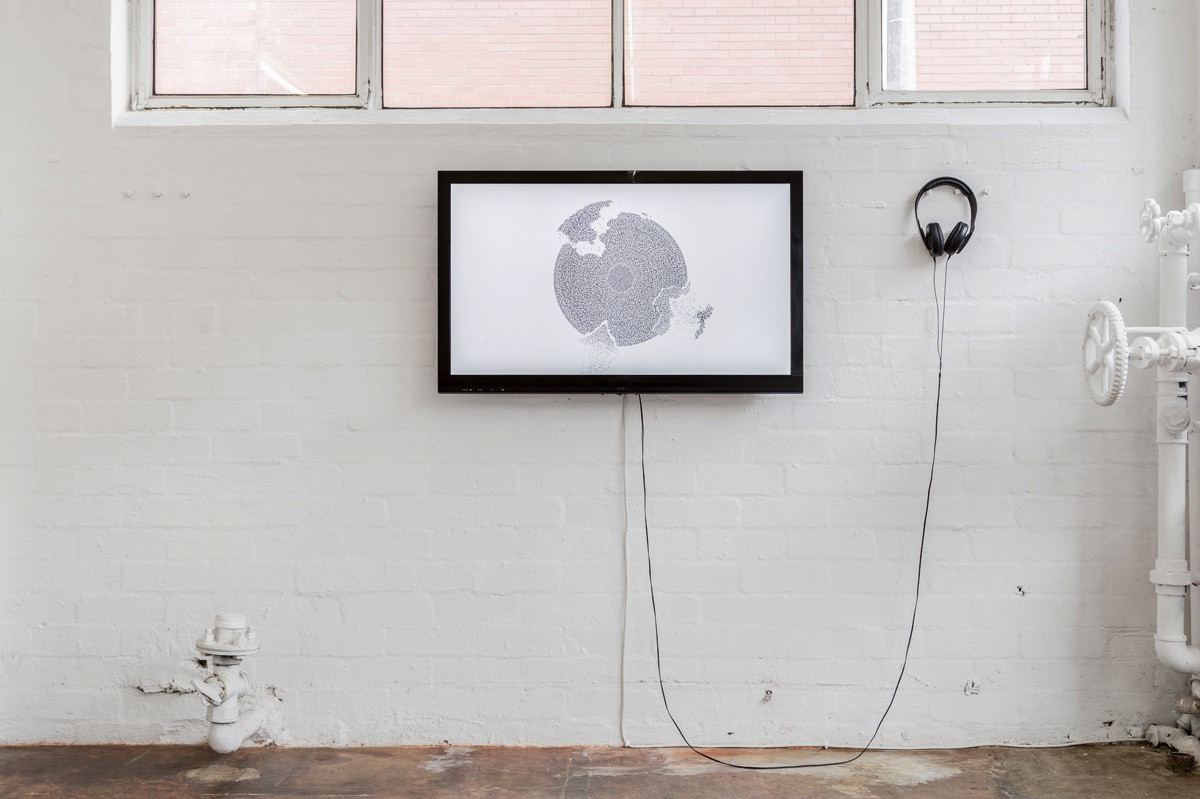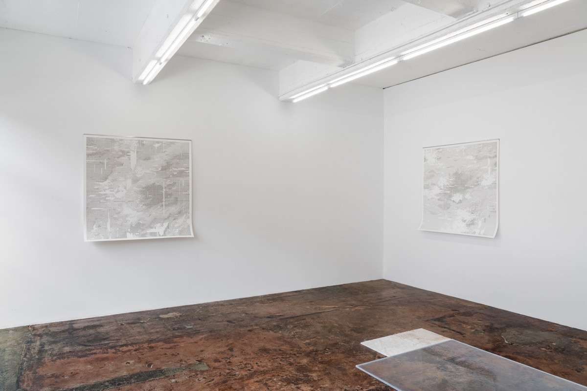 Exposing the digital building blocks of information 1 and 0 from behind the glow of the computer screen, Broekhuysen reveals today’s information based world as a series of abstract constructions and shifting territories, where we find not only our connectedness to the world but also increasingly, our isolation from it. The title for the works, ‘The Map Is Not The Territory’, a quote taken from Alfred Korzybski’s book, ‘Science and Sanity’, 1933, can also be understood in Broekhuysen’s large digital landscapes as ‘the information is not the belief that we construct from it’. Belief systems, formed from ideas, spawned from information are constructed territories with impermanent borders, much like the societies that are shaped from them. Such systems and territories are also not finite, as the maps which Broekhuysen has painstakingly hand stamped depict, they ebb and flow freely, at once reminiscent of a weather chart, land formation, or matrix.